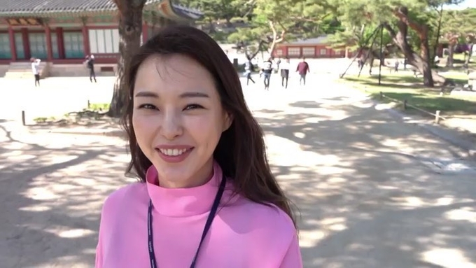 공개된 셀카 사진 속 이하늬는 영국의 한 거리에서 카메라를 향해 밝게 미소짓고 있네요.