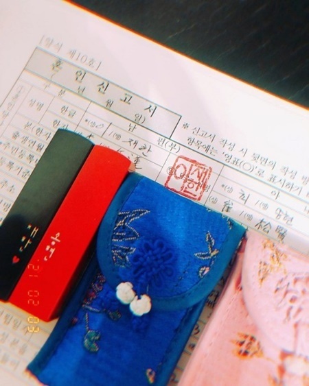 최송현은 "'부럽지' 우리 커플 담당 작가 유리미가 선물해준 커플 도장. 결혼 선배님이라 혼인 신고할 때 도장이 필요하다며 예쁘게 이름 새겨 줘서 매우 감동했다. 결혼식 때처럼 두근두근 떨리는 거 왜그러는 거야"라고 행복한 심경을 전했고, '여보 결혼해줘서 고마워요'라고 최송현은 혼인신고를 해서 이제 법적 남편이 된 이재한에 대해서 고마움을 표시하기도 했습니다.