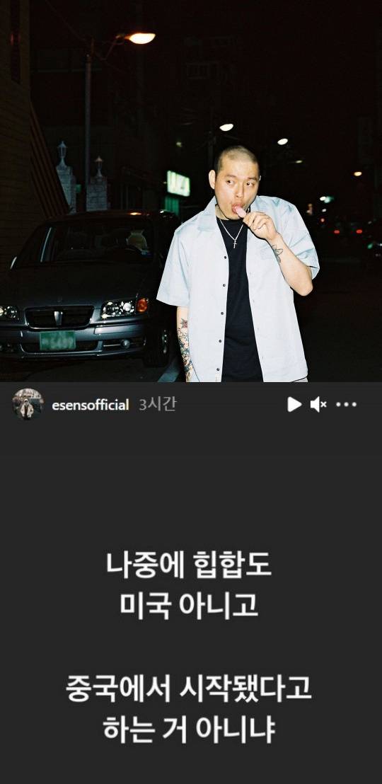 이센스는 "나중에 힙합도 미국 아니고 중국에서 시작됐다고 하는 거 아니냐"면서 중국어로 '한복은 한국 것'이라고 적으면서 중국네티즌들을 상대로 광역 어그로를 끌었습니다.