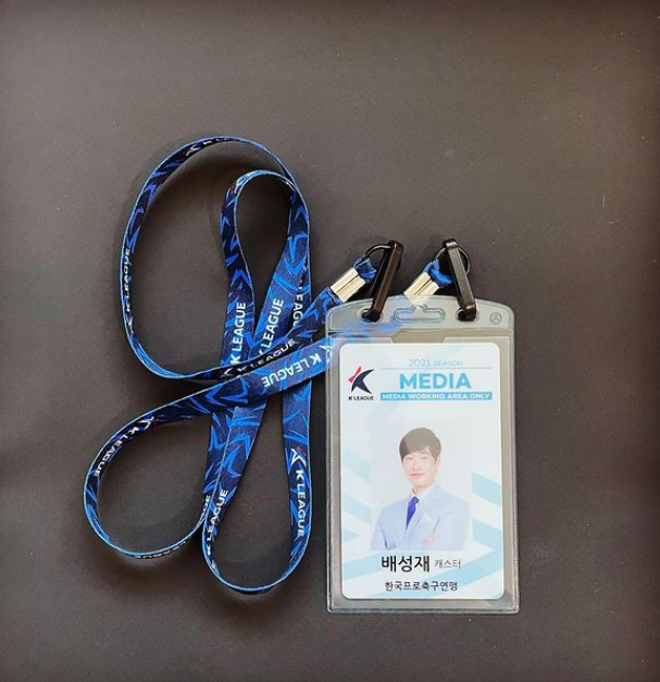 공개된 사진 속 배성재는 양손에 짐을 든 채 SBS 사옥 내 복도에 서 있는 모습과 또 다른 사진에는 SBS 사원증, 한국프로축구연명에서 발급한 출입증도 같이 올린 배성재입니다.