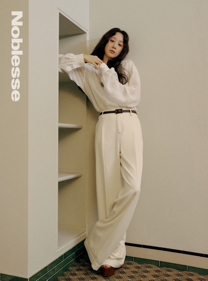 화보 속 정려원은 화이트 리넨 셔츠와 화이트 울 팬츠 셋업으로 우아하면서도 자연스러운 모습을 보여주기도 했고, 트렌치코트 착장에 네이비 백을 컬러 포인트로 클래식한 룩울 완벽하게 소화하기도 했습니다.