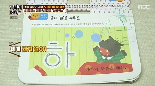 어린 유화답게 금방 한글 공부에 의욕을 잃었고 김정화는 재촉하지 않고 바로 교재를 덮는 모습을 보여주었어요.