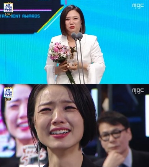 또한 김숙은 "올해는 상을 못 받고 지나가는 줄 알고 가족들한테 TV 안 봐도 된다고 했는데 부산에서 응원하고 있을 언니들, 아빠 너무 감사하다"며 눈물을 보였습니다.
