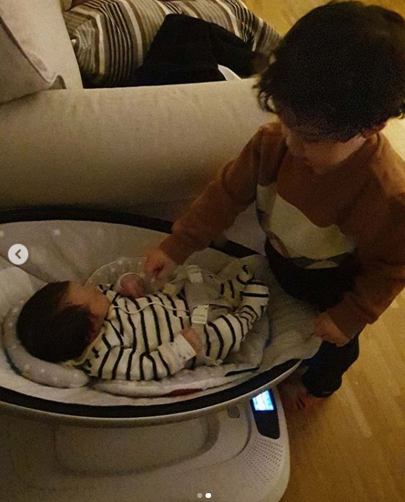 게재된 사진 속 건후는 태어난 동생의 가슴에 뽀뽀하고 있는 근황이 공개 되어 있네요!