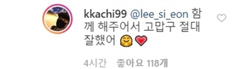 동생을 응원하는 댓글을 단 유세윤이네요! 이시언씨 힘내시고! 유세윤씨도 응원하는 댓글 잘 다셨습니다!
