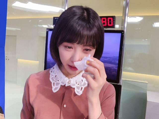 그동안 김민아 기상캐스터 진행했던 코너가 폐지되었고, 마지막 방송의 아쉬움에 눈물을 흘리는 김민아의 모습이네요