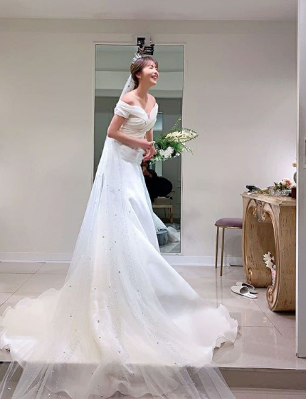 홍진영은 2020년 3월 30일 자신의 인스타그램에 “‘미우새’에서 입은 드레스사진”이라는 글과 함께 두 장의 웨딩드레스 사진을 공개했습니다.