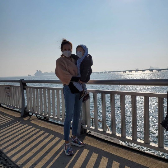 공개된 집 공개 사진 속에는 거실 쇼파 앞에서 아이를 안고 시티뷰를 바라보는 현영의 모습이 담겨있네요. 넓은 거실에 뷰가 어마어마하네요!