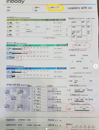 이시영 몸이 어마어마하게 좋겠군요! 지방이 그만큼 없고 근육으로 꽉찬 이시영이군요! 완전 자기관리를 잘하고 있는 것을 보여주는 이시영의 인바디네요!